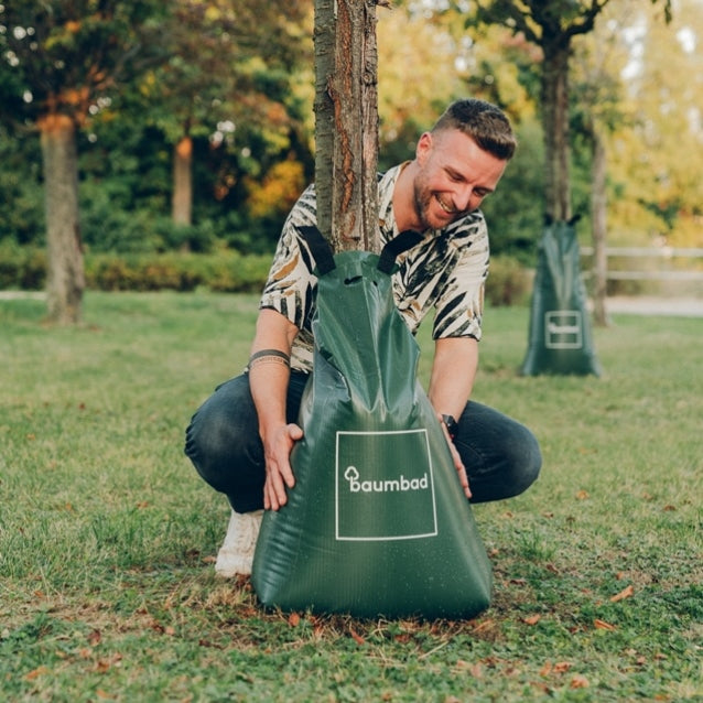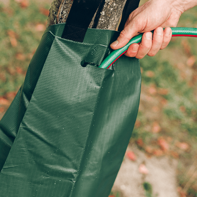 Durch die bis zu 7 Stunden dauernde Tröpfchenbewässerung, können Bäume supereinfach mit nur einer Befüllung bewässert werden. Die lange und gleichmäßige/kontinuierliche Bewässerung ermöglicht den Bäumen, das Wasser wesentlich effektiver und effizienter aufzunehmen, als durch normales Gießen. Das schützt Bäume noch besser vor Hitze und Austrocknung bei Dürre und anhaltenden Trockenperioden.