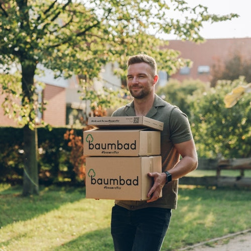 Bei baumbad werden die Austrittslöcher gelasert (0,8 mm rechts und 0,8 mm links). Die Löcher befinden sich dabei an der Knickpfalz der jeweiligen Seite, wodurch die diese auch vor Verstopfung durch Schmutz geschützt werden. Der Großteil der Anbieter auf dem Markt sticht die Löcher. Das Lasern minimiert die Verstopfungsgefahr und ist somit pflegeleichter und macht die Beutel langlebiger.