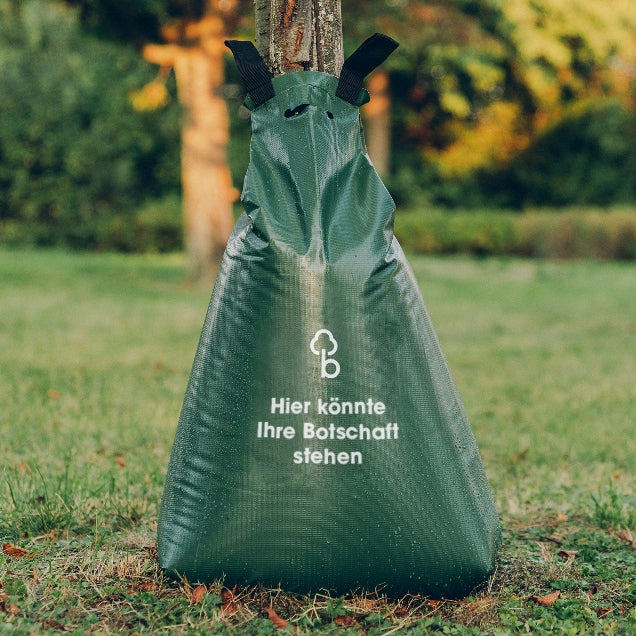 Sie sind Großabnehmer, beliefern den Fachhandel oder möchten die baumbad Bewässerungsbeutel in Ihr Sortiment aufnehmen um es ihren Großkunden anzubieten. Sie können die Beutel bei uns mit Ihrer Botschaft, Ihrem Logo personalisieren . Zudem Individuelle Beutelfarben sind bei uns auch möglich*. (* Abhängig von der bestellten Menge)