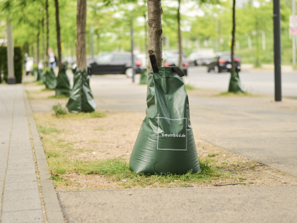 Alle Bäume benötigen Wasser zum Wachsen und Gedeihen. Durch den Einsatz von Baumbeuteln werden zusätzlich erhebliche Zeit- und Wasserressourcen eingespart.